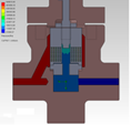 - 阀体中腔导向的阀瓣具有上下导引环,阀瓣的顶部和底部同时导向,构成全程在阀体中腔导向的活塞式阀瓣,可以消除因各种受力情况下产生的卡死,表面擦伤,阀瓣震颤等现象。阀瓣底部的导引环可以使流体近似直线的方式通过,有效的消除侧面冲击引起阀门故障。